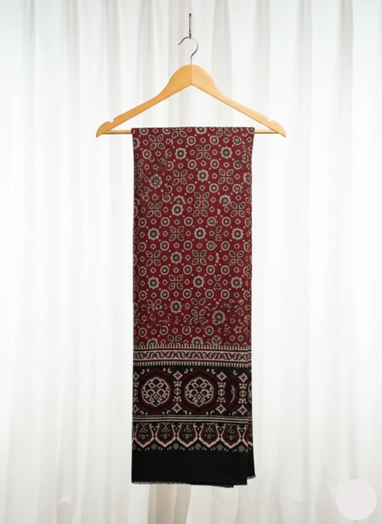 Blue Ajrak Kharik Pattern Shawl – Hand Block Printed Organic Cotton