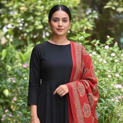 Ajrak Scarf Scrunchie – Anbi Red Handmade Cotton Hair Accessory