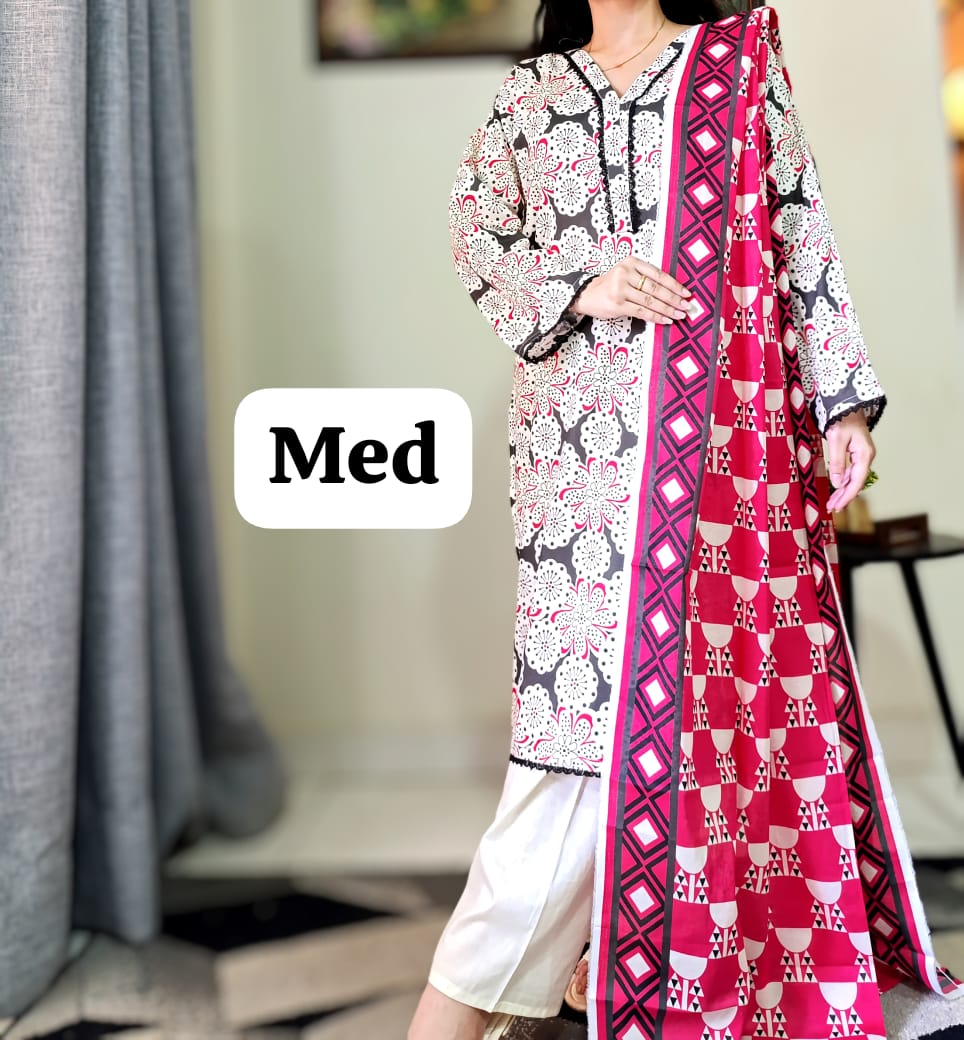 This expertly crafted 3-piece ready-to-wear lawn set features